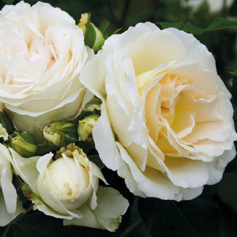 ‚Kosmos®‘ wird etwa 80 cm hoch und bezaubert mit nostalgischen, stark gefüllten Blüten in Cremweiß. Ihre üppig gefüllten, cremeweißen, von Juni bis Oktober erscheinenden Blüten werden, in Kombination mit gesundem, dunkelgrün glänzendem Laub, zum unverzichtbaren Blickfang im Rosengarten. Nicht nur ausgepflanzt im Garten, auch als Kübelpflanze begeistert die öfterblühende Beetrose ‚Kosmos®‘ mit dem guten Duft ihrer Blüten und komplettiert die sommerliche Blütenpracht auf dem Balkon, der Terrasse oder am Hauseingang.
