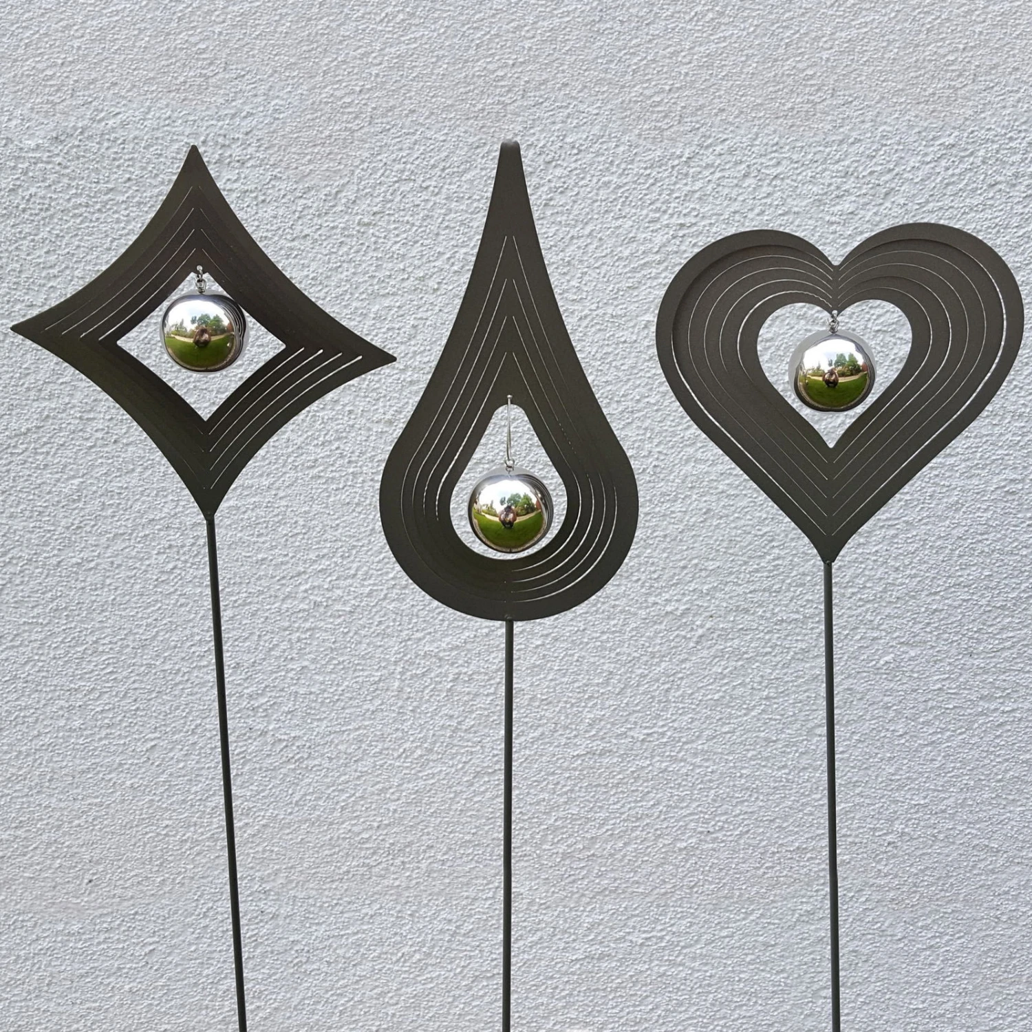 Farbige Blumenbeete werden jetzt noch schöner – mit dem Beetstecker Tropfen aus Stahl. Die wunderschöne Skulptur für den Garten in modischer dunkelgrauer Lackierung mit Edelstahlkugel lässt sich in wenigen Handgriffen in Pflanzenbeete oder Blumenkübel stecken und wird so zu einem echten Eyecatcher.