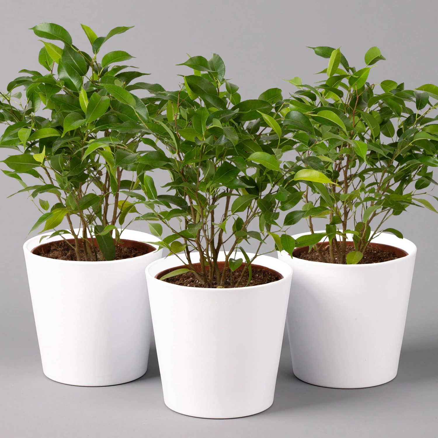 Birkenfeige ‚Natasja‘ Inkl. Übertopf Weiß, Topf 12cmØ, Höhe Ca. 25cm, 3er-Set