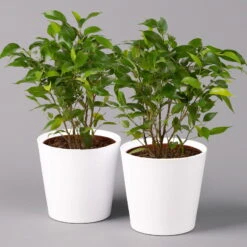 Birkenfeige ‚Natasja‘ Inkl. Übertopf Weiß, Topf-Ø 12 Cm, Höhe Ca. 25 Cm, 2er-Set