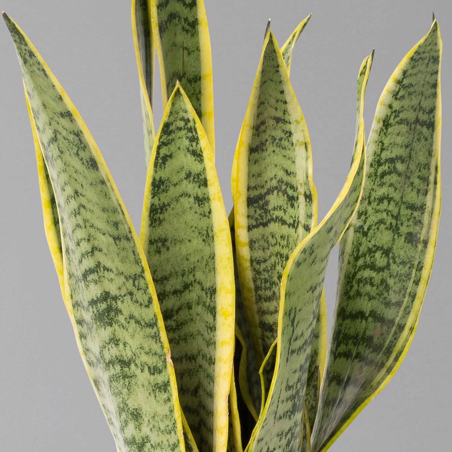 Der Bogenhanf (Sansevieria trifasciata ‚Laurentii‘) gilt als eine der robustesten und pflegeleichtesten Zimmerpflanzen überhaupt und ist auch unter den Namen ‚Sansevierie‘ oder ‚Schwiegermutterzunge‘ bekannt. Charakteristisch sind die riemenartig festen, fleischigen Blätter, deren Blattränder beidseitig gelbe Querstreifen aufweisen. Die grundständigen Blätter entspringen einem Rhizom und enden aufrecht in einer Spitze. Bei guter Pflege kann der Bogenhanf über einen Meter hoch werden.
