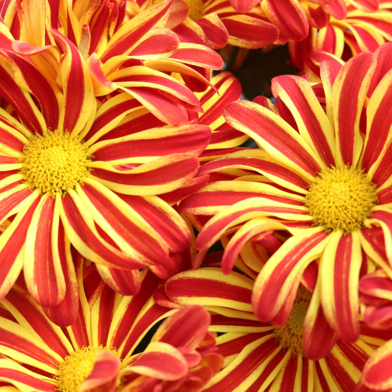 Chrysanthemen ‚Rainbow Circus‘ Rot-gelb Gestreift Topf-Ø 14 Cm, 4er-Set