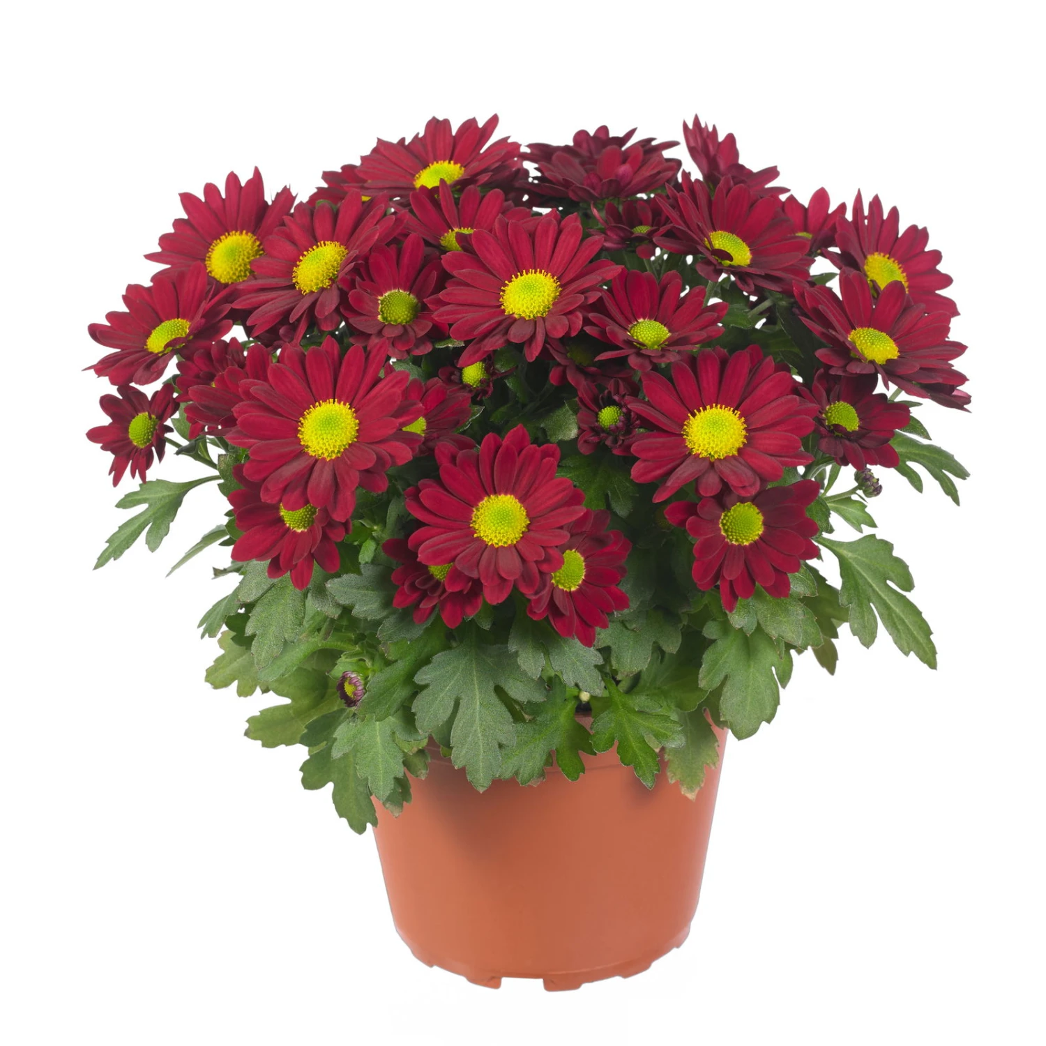 Holen Sie sich mit unseren Chrysanthemen den Herbst ins Haus. Die vielen kleinen, roten Korbblüten sorgen für eine Blütenfülle von Juni bis Oktober. Chrysanthemen bringen schnell und einfach Farbe, benötigen nur wenig Pflege und eignen sich für einen halbschattigen bis sonnigen Standort. Gerade am Hauseingang als bunter Willkommensgruß, im Garten, auf der Terrasse oder dem Balkon sind die bunten Herbst-Chrysanthemen garnichtmehr wegzudenken. Die pflegeleichten Beet- und Balkonpflanzen sollten dennoch regelmäßiges gegossen werden. Wie häufig Sie gießen müssen, hängt von der Temperatur, der Sonneneinstrahlung und der Größe des Wurzelballens ab. Generell gillt, je mehr die Chrysanthemen der Sonne ausgesetzt sind, desto schneller verblühen diese. Optimal zur Kombination eignen sich Gräser, Enzian, Calluna, Heide, Efeu, Buchs, Kleinkoniferen, Blattschmuckpflanzen, Stiefmütterchen, Hornveilchen und Kürbisse.