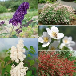 Unser Set Dufthecke ‚Solitär‘ bietet Ihnen ein 20 blühfreudige Gehölze, die Ihren Garten mit zauberhaften Aromen erfüllen. Sie erhalten 4 Mal Schmetterlingsstrauch Buddleja davidii ‚Black Knight‘ (im 7,5 Liter Topf) mit großen Rispen in Purpur bis Dunkelviolett, 4 Mal reichblühenden Perlmuttstrauch Kolkwitzia amabilis (im 7,5 Liter Topf) mit glockenförmigen Blüten in rosa-weiß und Zeichnung in gelb-orange, 5 Mal Duftjasmin Philadelphus coronarius (im 7,5 Liter Topf) mit intensiv duftenden Blüten in Schneeweiß, 4 Mal Blut-Johannisbeere Ribes sanguineum ‚King Edward VII‘ (im 7,5 Liter Topf) mit roten, hängenden Blütentrauben, 3 Mal Edelflieder Syringa vulgaris ‚Mme Lemoine‘ (im 12 Liter Topf) mit gefüllten, stark duftenden Blütenrispen in weiß. Je nach Wunsch können Sie die Gehölze zu einer außergewöhnlichen Hecke formen, in kleinen Gruppen oder auch als Solitär verwenden, um den Frühling mit einem Feuerwerk an herrlichen Düften zu begrüßen.