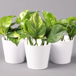 Jede Pflanze wird im Pflanztopf mit 12 cm Ø und Keramiktopf Dallas mit 14cm Durchmesser in weiß matt geliefert.