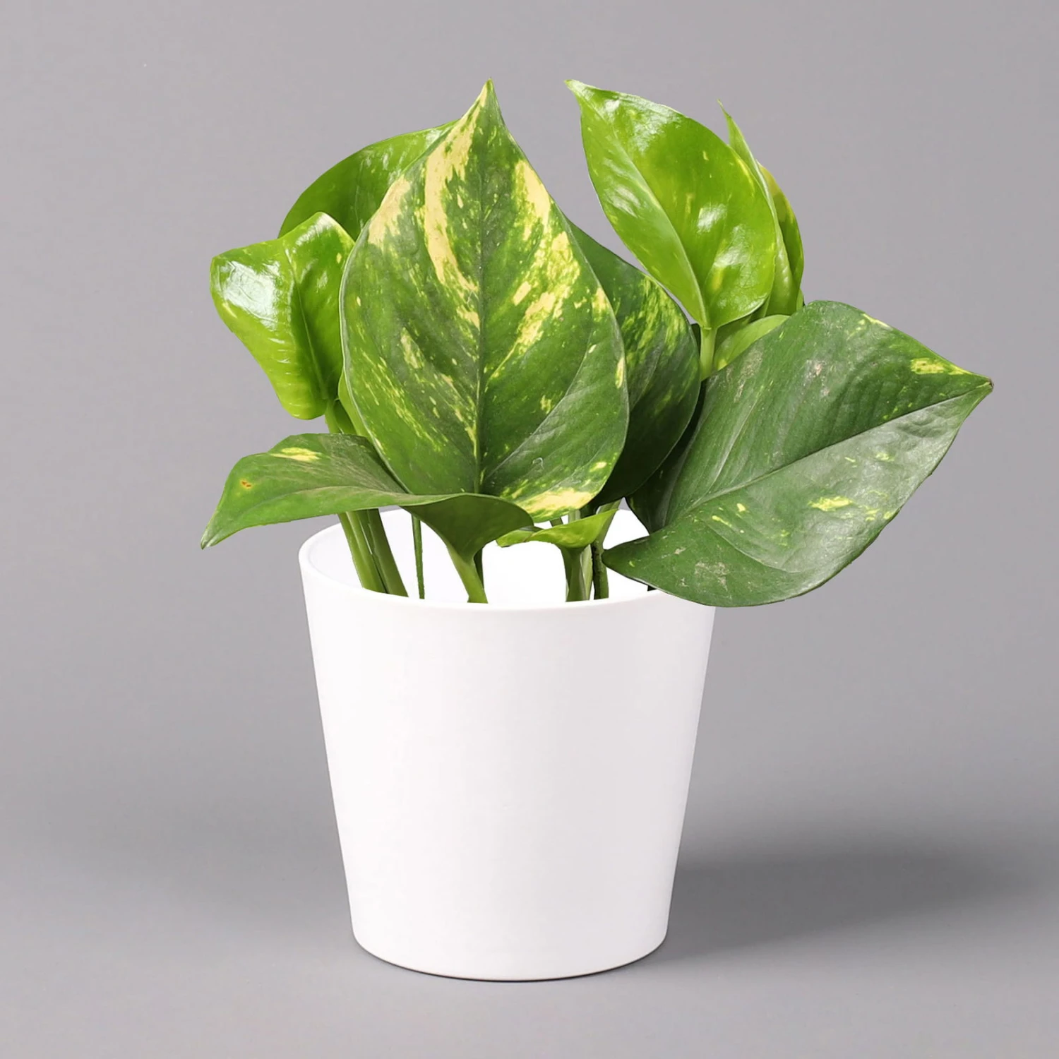 Die Efeutute, Epipremnum pinnatum (syn. Epipremnum aureum), ist eine anspruchslose und zugleich dekorative kletternde oder hängende Blattschmuckpflanze. Die Efeutute ist eine nahezu perfekte Zimmerpflanze für Anfänger oder fürs Büro, die etliche Fehler wie seltenes Gießen oder nur sporadisches Düngen verzeiht. Mit zu häufigen Wassergaben können Sie dagegen der Efeutute erhebliche Schäden zufügen. An einem hellen absonnigen oder auch halbschattigen bis schattigen Standort fühlt sich Ihre Pflanze sofort wohl. Zugluft und direkte Sonneneinstrahlung sind dagegen zu vermeiden. Sogar im Winter dürfen die Lufttemperaturen nicht dauerhaft unter 16 Grad sinken. Die Epipremnum pinnatum gehört zu den beliebten Raumklimapflanzen und entzieht der Luft Benzole, Nicotin und weitere Schadstoffe. Bitte stellen Sie Ihre Efeutute außerhalb der Reichweite von Kindern oder Hautieren auf, da der Pflanzensaft giftig ist.