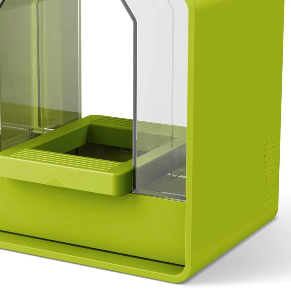 Das Futtersilo Landhaus von Emsa bietet sich ideal als Futterstelle für Gartensingvögel wie Haussperlinge oder Blaumeisen an. Durch das klarsichtige Silo lässt sich der Füllstand des Futters jederzeit und ganz unkompliziert kontrollieren. So ist sichergestellt, dass das Futter nicht ausgeht und die Tiere immer gut versorgt sind. Hängen Sie das Futtersilo aus fröhlich grünem, witterungsbeständigen Polypropylen wahlweise an einem Baum auf, stecken Sie es mit einem Stab in den Garten oder befestigen Sie es am Balkongeländer oder der Hauswand.