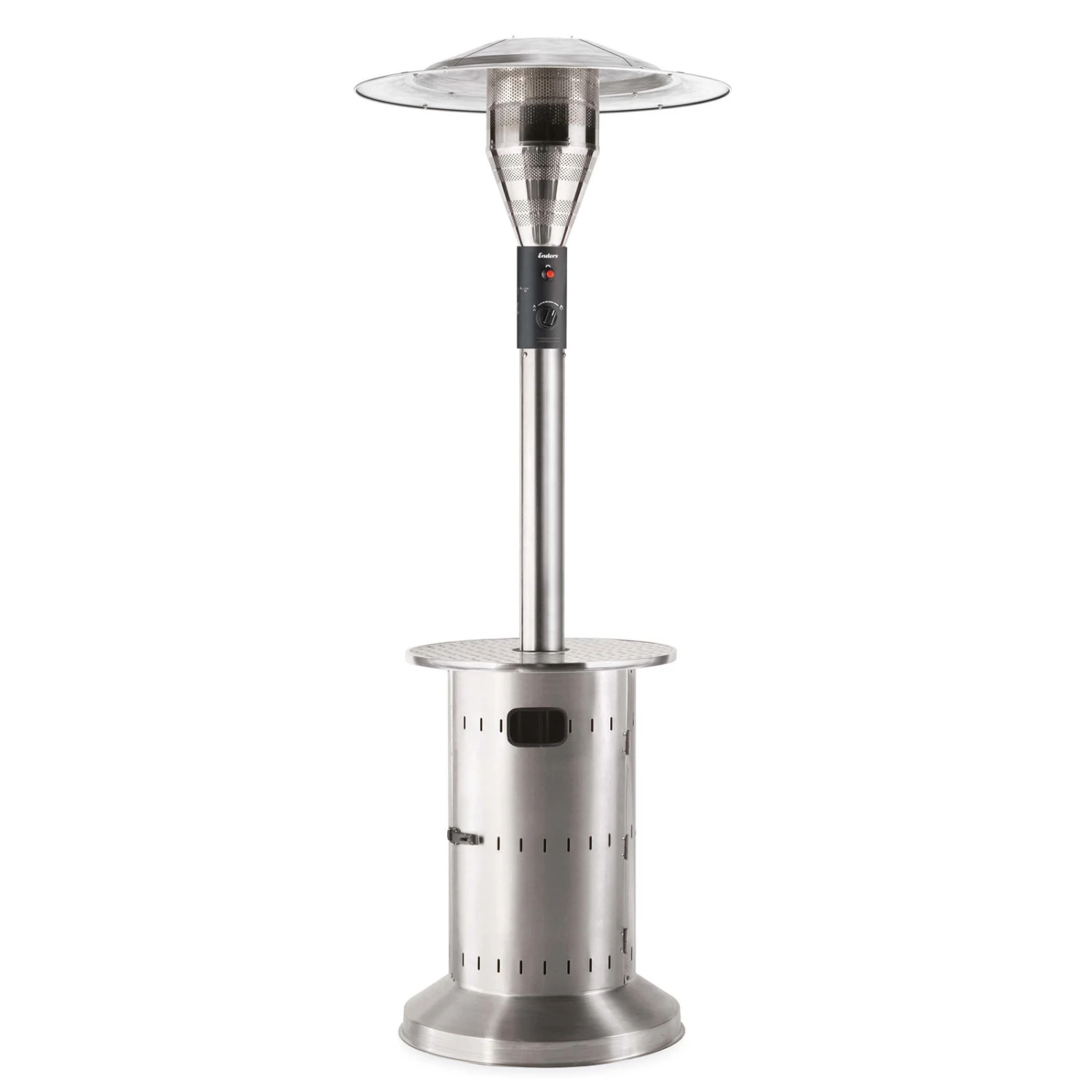 Dieser Designer-Heizstrahler mit Turbo-Brenner aus dem Hause Enders eignet sich gleichermaßen gut für gewerbliche oder private Nutzung. Der Heizstrahler-Pilz aus gebürstetem Edelstahl ist funktionell gestaltet, das Modell spendet wohlige Wärme bei einem Event im Freien und lässt sich außerdem mit einer Kette gegen Diebstahl sichern.