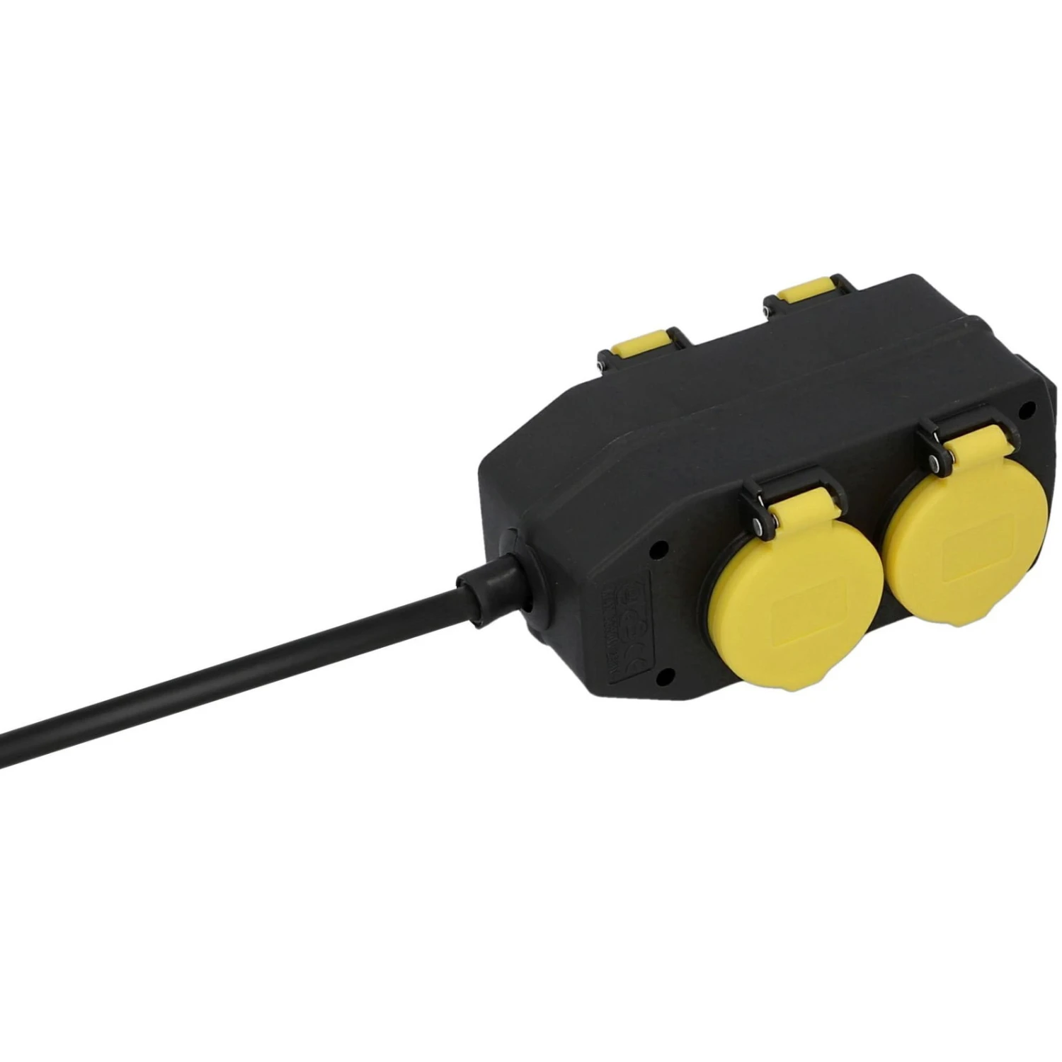 Feuchtraum-Steckdosenblock 4-fach, Schwarz/gelb