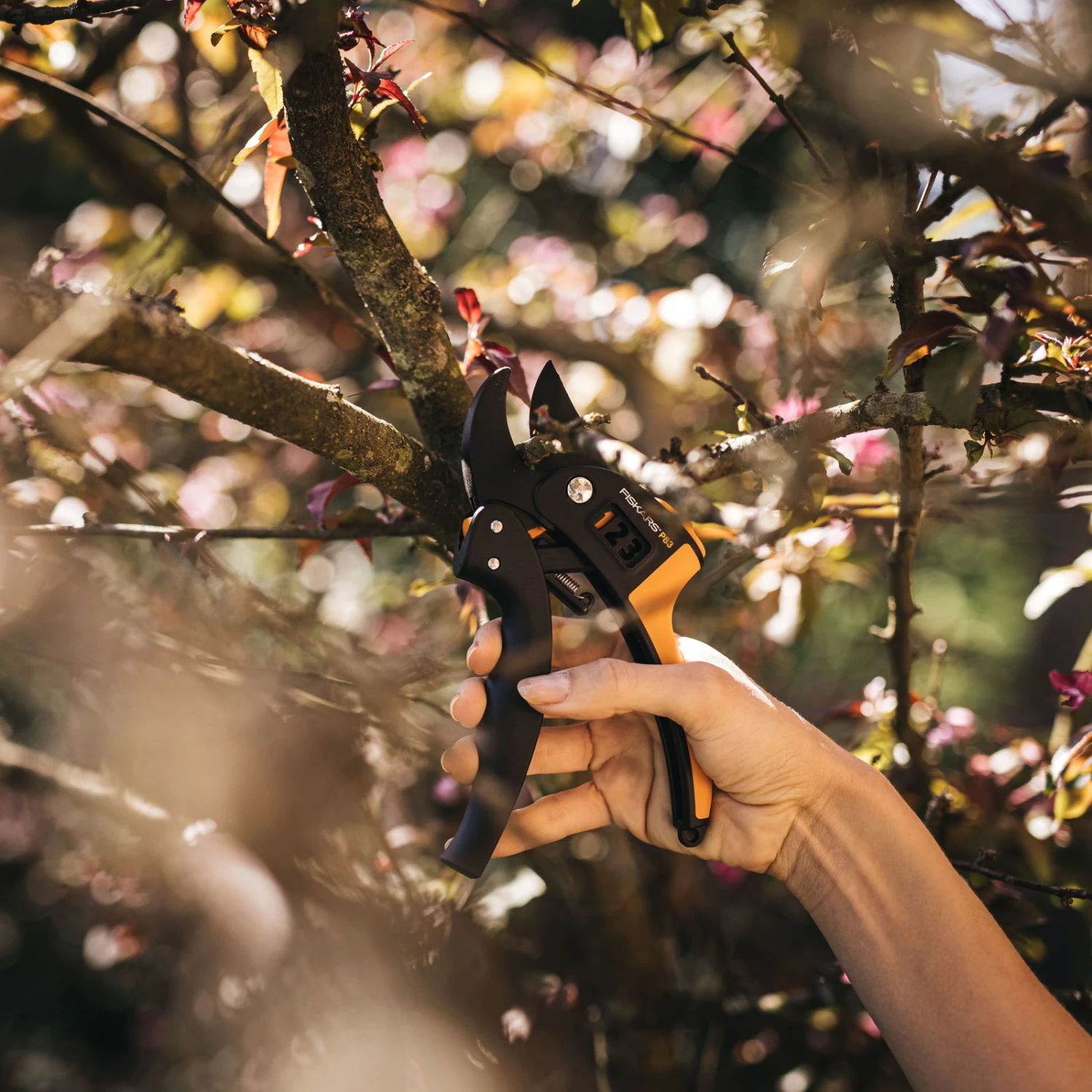 Die PowerStep™ Gartenschere ist ein richtig schnittiger Typ und verfügt über einen innovativen Stufenmechanismus. Das Amboss-Modell schneidet automatisch in bis zu drei Stufen trockene und harte Äste sowie Zweige mit minimalem Kraftaufwand für Sie. Welche Stufe gewählt wird, ist abhängig von der Aststärke. Die obere Klinge ist antihaftbeschichtet und wirkt reibungsreduzierend, damit Sie optimale Schnittergebnisse erzielen. So macht die Gartenarbeit mit dieser Fiskars Gartenschere gleich doppelt so viel Spaß! Mit dem 18 Zentimeter langen PowerStep™-Modell schneiden Sie bis zu 24 Millimeter dicke Zweige problemlos durch. Einen zusätzlichen Vorteil bieten die Griffe. Sie sind ergonomisch geformt und ermöglichen dadurch eine komfortable Benutzung der Schere. Der obere Griff bietet durch seine Beschichtung mit rutschfestem Material einen sicheren Halt. Die PowerStep™-Ausführung wiegt nur 140 Gramm und ist dank ihrer glasfaserverstärkten Kunststoff-Griffe und des Kunststoff-Ambosses besonders langlebig. Auch diese Fiskars Gartenschere verfügt über zahlreiche Design-Auszeichnungen, wie den Red Dot Design Award.