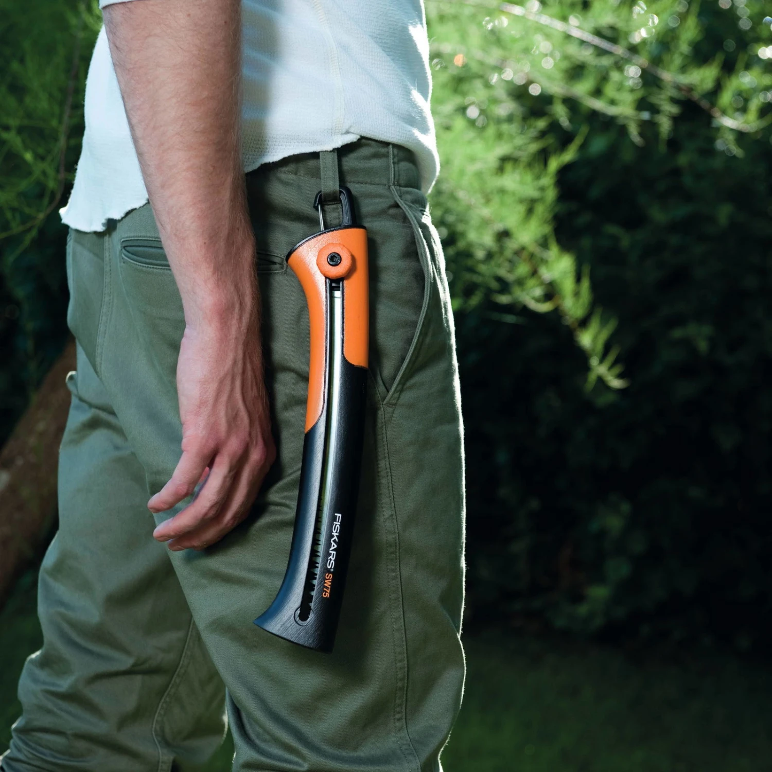 Mit der großen Handsäge von Fiskars schneiden Sie Äste und Baumstämme mit einem Durchmesser von bis zu 12 Zentimetern. Die Grobzahnung Xtrakt sorgt für sauberen und präzisen Schnitt, der ergonomisch geformte Handgriff erleichtert die Gartenarbeit. Für ein Plus an Sicherheit ist das Blatt im Griff versenkbar. Mit einem Clip lässt sich die Handsäge von Fiskars am Gürtel befestigen.