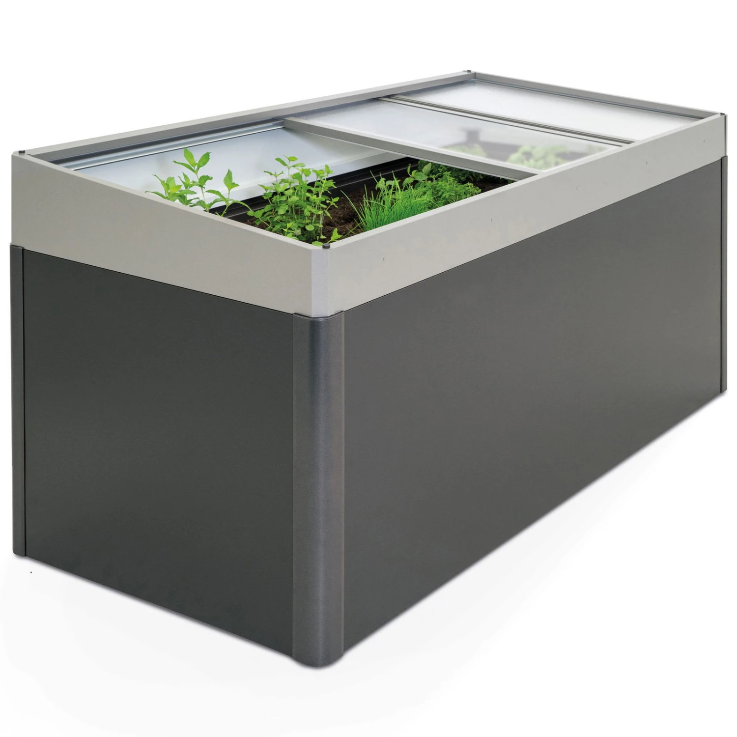 Dieser Frühbeetaufsatz eignet sich nur für Hochbeete der Marke Biohort der Größe 2×1. Er ist ausschließlich in der Farbe Quarzgrau-metallic erhältlich.