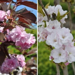 Prächtig blühende Zierkirschen erobern Ihren frühlingshaften Garten. Freuen Sie sich mit diesem Gehölz-Set auf eine Rotlaubige Nelken-Kirsche und eine Säulen-Zierkirsche ‚Amanogawa‘.