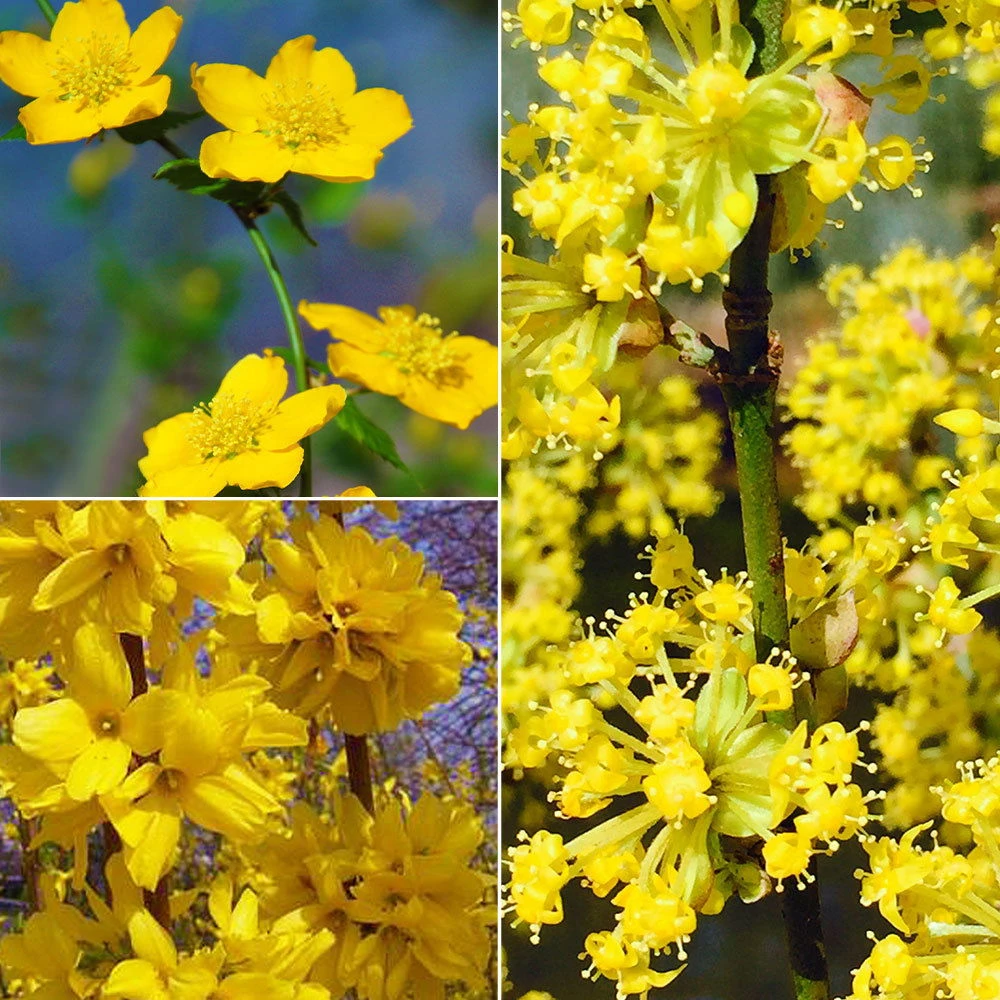 Das Gehölz-Set Frühlingsblüher beinhaltet eine Kornelkirsche mit gelben Doldenblüten, eine großblütige Forsythie mit großen, goldgelben Glöckchenblüten und einen Ranunkelstrauch ‚Golden Guinea‘ mit goldgelben, ungefüllten Blüten. Alle Pflanzen in diesem Set sind wintergrün, sommergrün und winterhart und wirken sowohl einzeln wie auch in Gruppen gepflanzt.