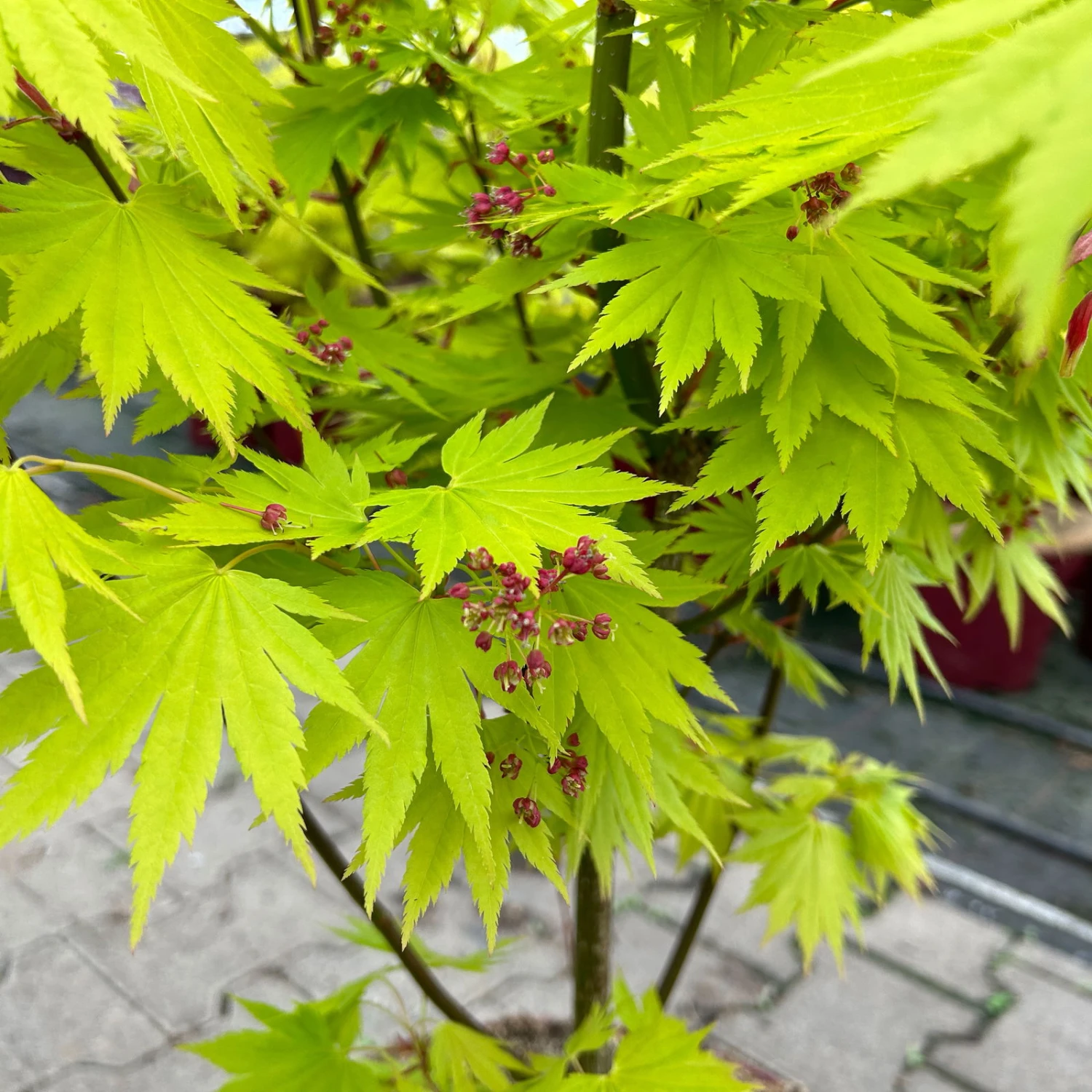 Tipp: der frische Austrieb, der im Gewächshaus überwinterten Japanischen Ahorn, ist sehr empfindlich. Daher im Frühjahr die Pflanzen mit frischem Austrieb vor Nachtfrösten schützen und an einem schattigen Standort im Garten an die Außentemperaturen und die direkte Sonneneinstrahlung gewöhnen.