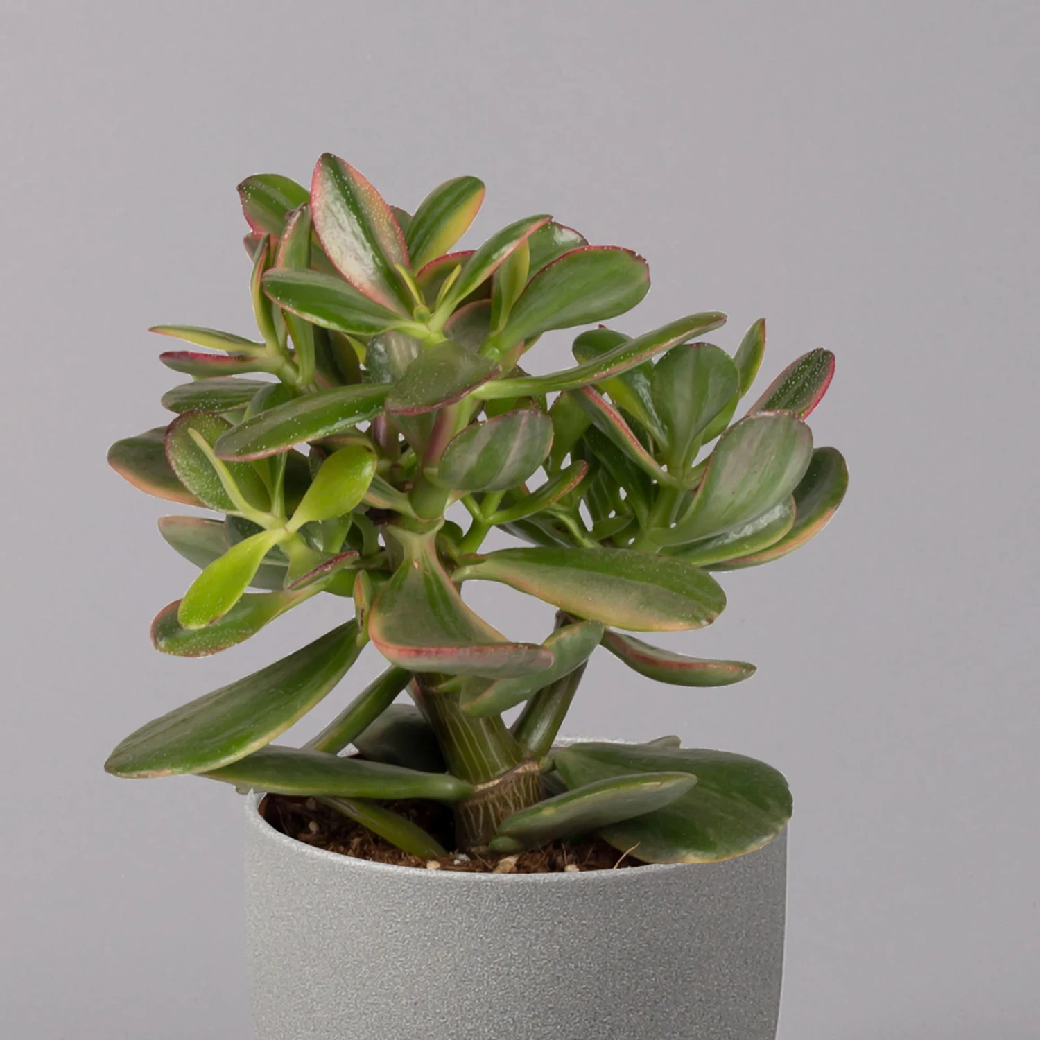 Der Geldbaum (Crassula ovata), auch unter dem Namen „Pfennigbaum“ bekannt, ist eine sukkulente Pflanze aus der Familie der Dickblattgewächse, welche ursprünglich aus den warmen Regionen Südafrikas stammt. Die fleischigen, oval bis rundlichen Blätter speichern Wasser und erinnern in ihrer Form an Münzen, daher der deutsche Name. Charakteristisch ist auch der rötliche Blattrand. Je nach Sorte können die Blätter auch röhren- bis löffelartig erscheinen. Bei guter Pflege kann der Geldbaum Höhen von bis zu 1 Meter erreichen und bildet dabei einen Stamm aus, sodass der Habitus dem eines kleinen Baumes ähnelt.