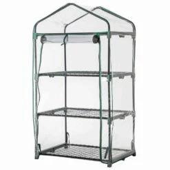 Gewächshaus Grün, Drei Etagen, Stahlrohr / Kunststoff, 126 X 70 X 50 Cm