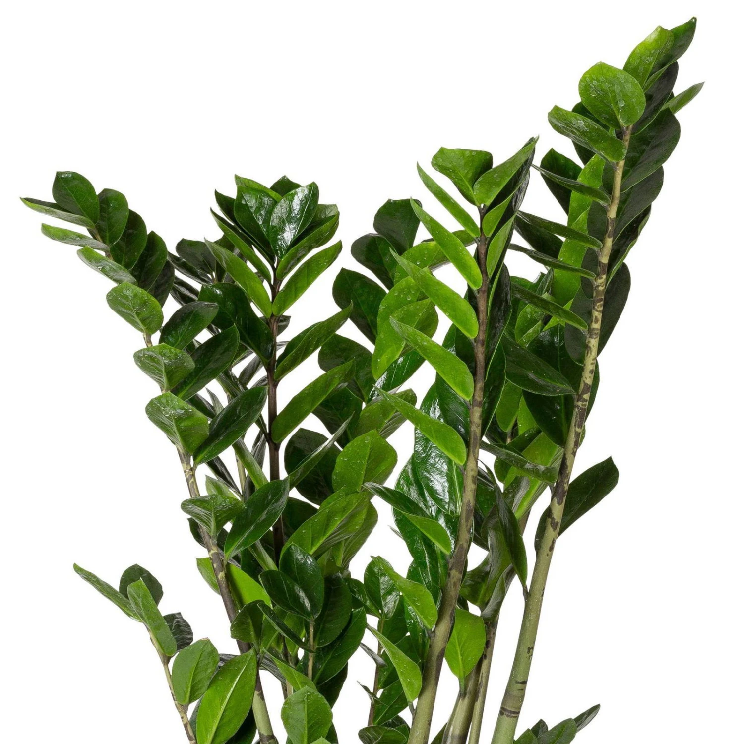 Die Glücksfeder (Zamioculcas zamiifolia), auch fälschlicherweise als Zamie bezeichnet, ist eine ebenso attraktive als auch absolut unverwüstliche Zimmerpflanze, die mit den meisten Standorten zurecht kommt und für Leute ohne grünen Daumen bestens geeignet ist. Charakteristisch sind die unpaaraig gefiederten Blätter, bei denen die Blattachse zu einem verdickten Speicherorgan umgewandelt ist und so oft irrtümlich für die Triebe der Pflanze gehalten wird. Die einzelnen Fiederblätter sind elliptisch und zugespitzt, mit kräftig dunkelgrüner Farbe und glänzender Oberfläche. DIe Glücksfeder wächst aufrecht bis leicht überhängend und kann eine Höhe von bis zu 80 cm erreichen.