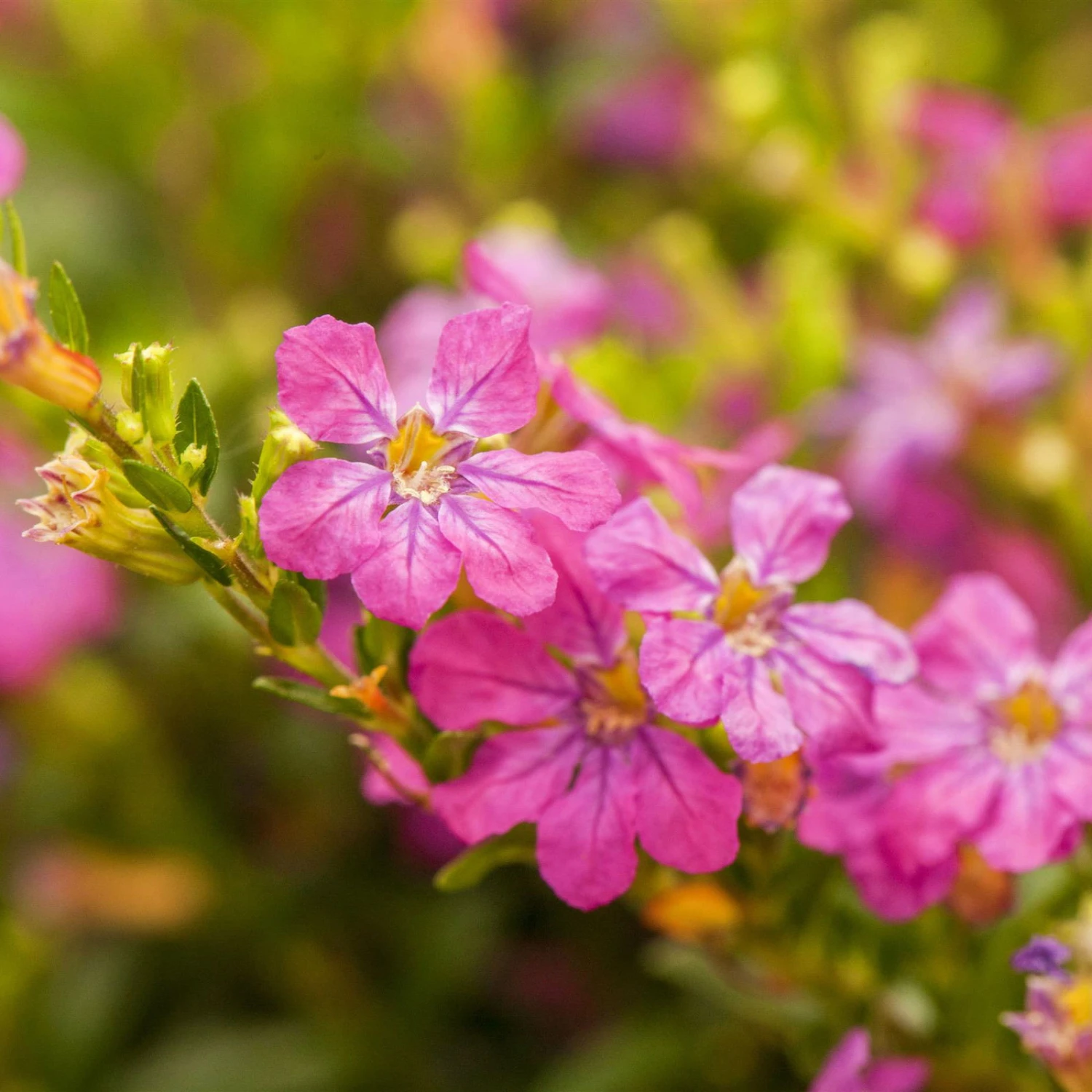 Die Japanische Scheinmyrte, Cuphea hyssopifolia, setzt mit ihren zarten, weißen Blüten charmante Akzente und macht in Ihrem Blumenbeet, im Balkonkasten oder im Kübel eine gleich gute Figur. Interessanterweise stammt diese Zierpflanze nicht aus Japan, sondern aus Südamerika und gehört zu den Köcherblümchen. Ideal sind ein warmer, sonniger oder halbschattiger Standort in Kombination mit einem lockeren, humosen und nährstoffreichen Substrat. Denken Sie daran, Staunässe und Trockenheit zu vermeiden. Unter optimalen Bedingungen blüht die Japanische Scheinmyrte ausdauernd über Monate hinweg. Die Cuphea hyssopifolia ist nicht winterhart und verträgt Temperaturen unter fünf Grad Celsius nicht gut. Zum Überwintern eignet sich ein heller und kühler Raum am besten.