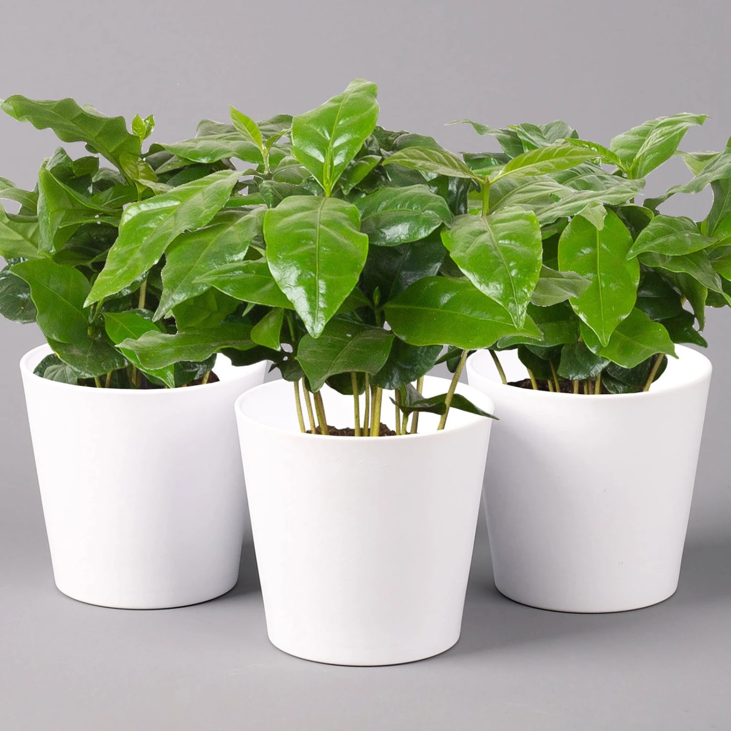 Kaffeestrauch Mit Keramiktopf Dallas Weiß, Topf-Ø 12cm, Höhe Ca. 25 Cm, 3er-Set