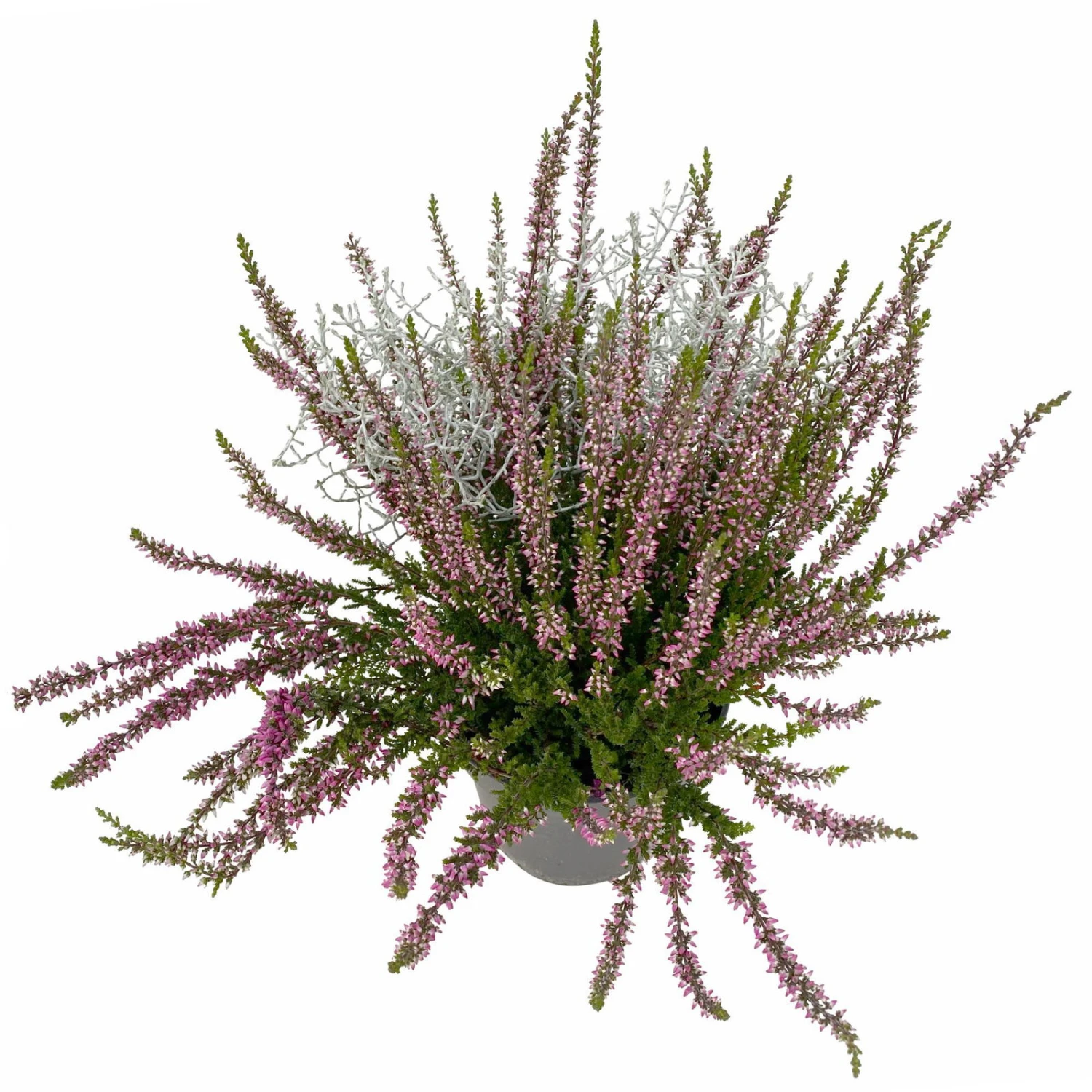Knospenheide & Calocephalus Mix, 6er-Set, Rosa-rot-silbergrau, Topf 13 Cm Ø
