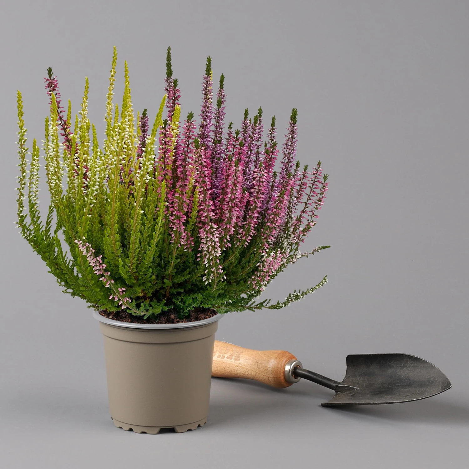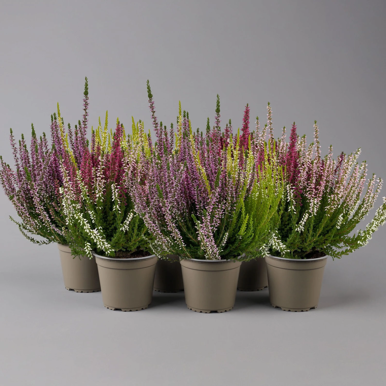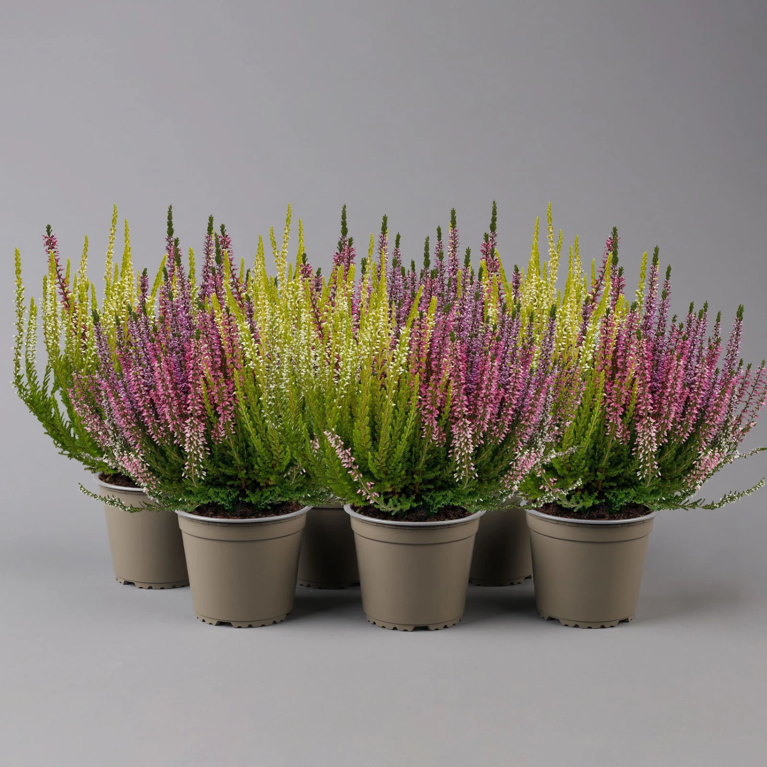 Die dreifarbigen Kölle’s Beste Knospenheiden ‚Trio‘ erfreuen mit einer langen Blütezeit von Juli bis November/Dezember. Da die Blütenknospen geschlossen bleiben, kann die Knospenheide Regen und nächtlichen Minustemperaturen gut standhalten und blüht bis in den Winter.