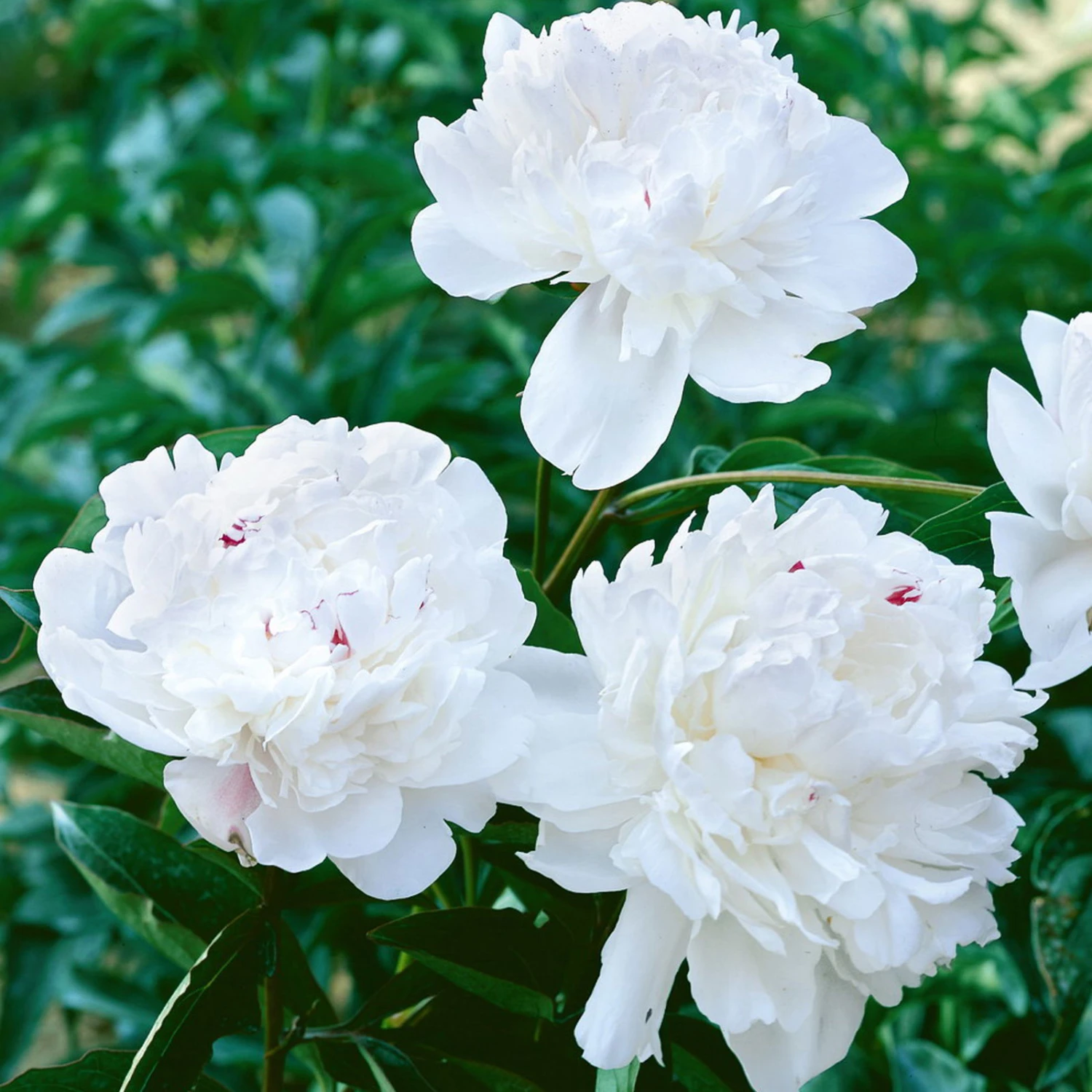 Sie sind auf der Suche nach einem ganz besonderen Blütenstar für Ihren Garten oder den Pflanzkübel auf Balkon und Terrasse? Die Kölle’s Beste Pfingstrose ‚Festiva Maxima‘ (Paeonia lactiflora) begeistert zur Blütezeit von Mai bis Juni mit weißen, üppig gefüllten und herrlich duftenden Blüten. Am wohlsten fühlt sich die gut frostverträgliche Kölle’s Beste Pfingstrose ‚Festiva Maxima‘ an einem sonnigen Platz mit humosen, nährstoffreichen und lehmigen Boden. Diese Pfingstrose wächst aufrecht und ausladend und erreicht eine Wuchshöhe von etwa 100 cm.