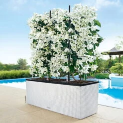 Zu diesem Pflanztrog erhalten Sie in unseren Gartencentern außerdem umfangreiches Zubehör wie das Trio Rankgitter, mit dem Ihre Pflanzen sicher in die Höhe klettern können. Für einen erhöhten Stand sind passende Sockel erhältlich.