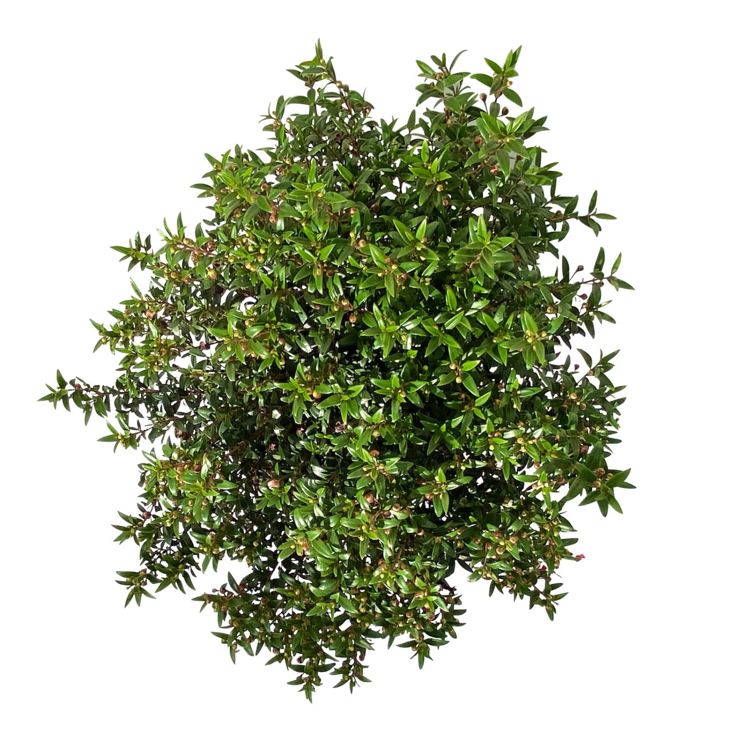 Die Myrte (Myrtus communis), auch Brautmyrte genannt, ist ein immergrüner Strauch und hat kleine, grüne, spitz zulaufende Blätter. Ursprünglich stammt die Myrte aus dem Mittelmeerraum und aus Vorderasien. Die mediterrane Kübelpflanze ist immergrün und kann eine Wuchshöhe von 1 bis 1,5 m erreichen,