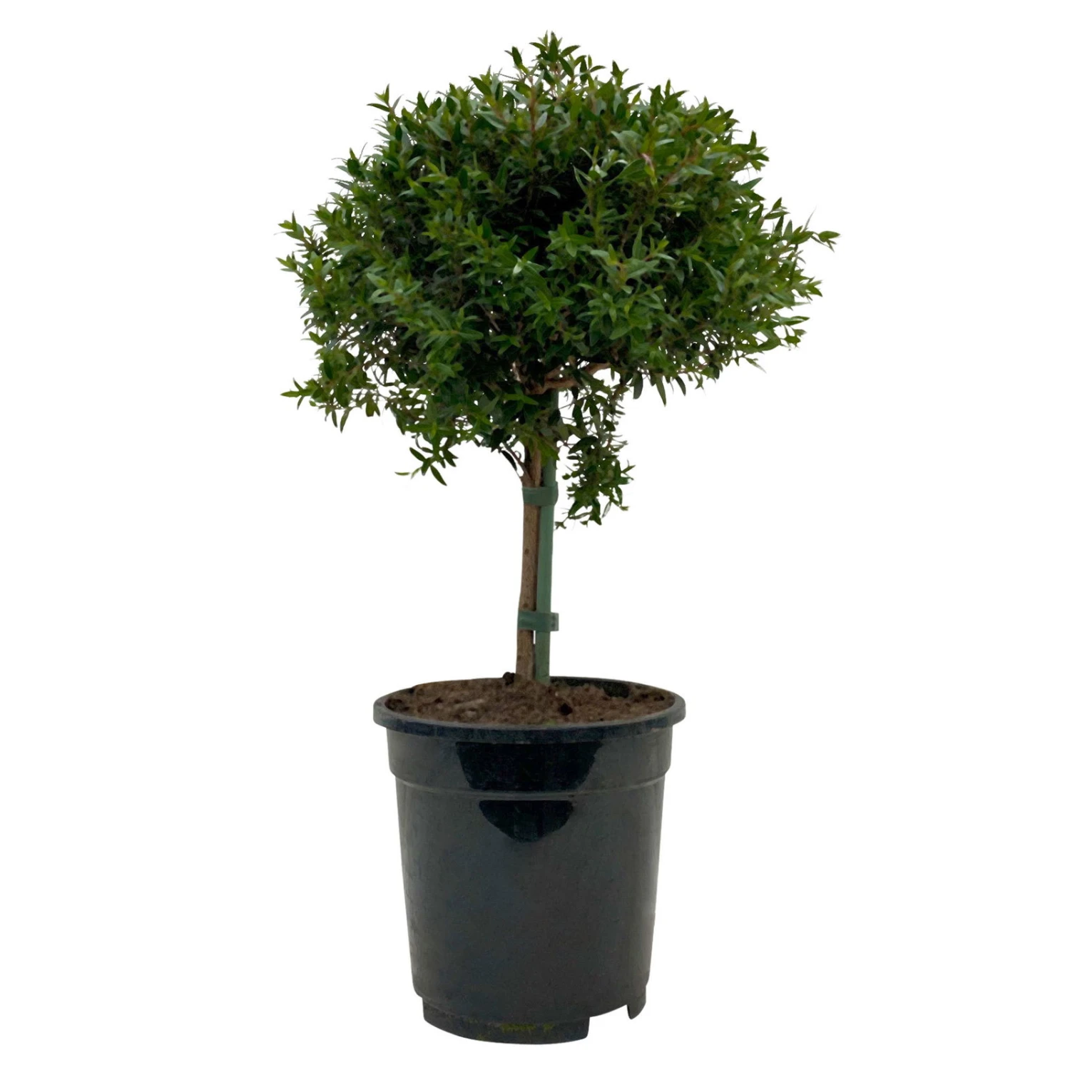 Die Myrte ist sehr schnittverträglich und kann gut in verschiedenen Formen, wie z.B. Kugel oder Pyramide gebracht werden. Das regelmäßige Entspitzen fördert ein buschiges, dichtes Wachstum.