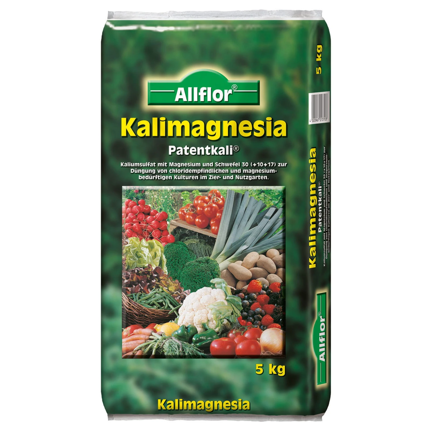 Patentkali Kalimagnesia von ALLFLOR versorgt Ihre Zierpflanzen mit Magnesium und Kalium. Vor allem für Pflanzen mit hohem Magnesiumbedarf wie Tomaten, Bohnen oder Kartoffeln ist dieses Düngemittel die richtige Wahl. Der Mineraldünger wirkt sofort und überzeugt mit einer langen Wirkzeit von 3 Monaten. Eine Verpackung reicht für bis zu 100 Quadratmetern.
