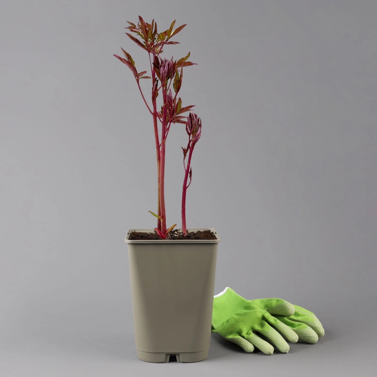 Bei der Pfingstrose, Paeonia lactiflora ‚Kansas‘, handelt es sich um eine langlebige Staude mit purpurroten, dicht gefüllten Blüten. Um ihre volle Pracht zu entfalten, benötigt sie durchlässige und nährstoffreiche Böden. Sie erreicht eine schöne Wuchshöhe von 90 bis 100 cm. Die Schnittblume kann ins Beet oder in den Kübel gepflanzt werden.