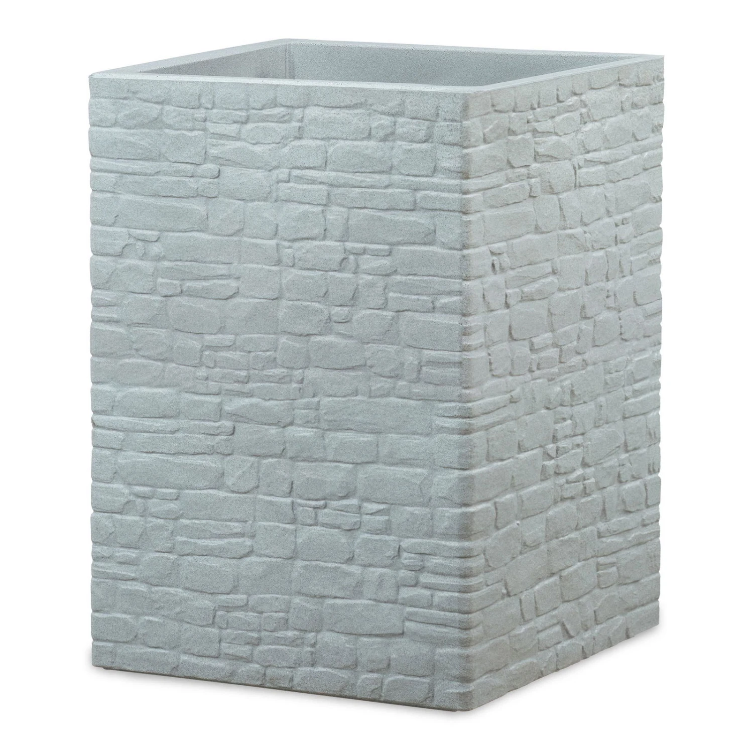 Pflanzgefäß ‚Muretto High‘, Eckig, Stein, Grau, Kunststoff