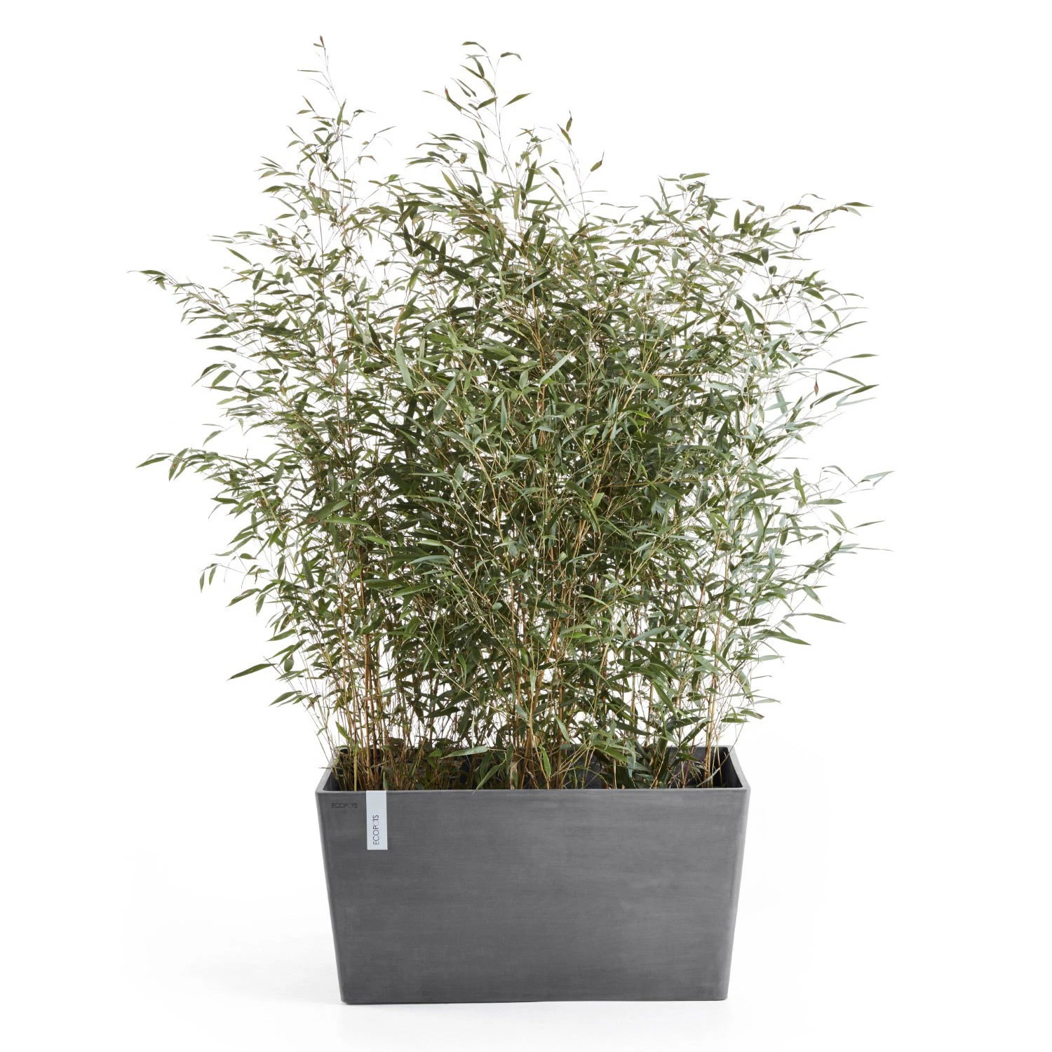 Als Raumteiler oder Abgrenzung macht der graue Pflanzentrog ‚Paris‘ von Ecopots im Innen- und Außenbereich eine gleichermaßen gute Figur. Dieser elegant designte Pflanzkasten in Betonoptik besteht aus recyceltem Stein- und Kunststoffpulver, wobei das Material frost- und bruchfest sowie UV-resistent ist.
