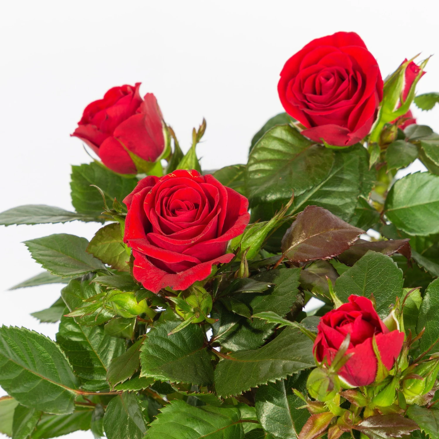 Die Rose (Rosa) überzeugt seit jeher mit ihrer Eleganz und ihren prachtvollen Blüten, ob als Schnittblume, im Beet oder als imposante Rosenbüsche. Mit unserem 3er-Set erhalten Sie drei formschöne Topfrosen in rot inklusive weißem Keramik-Übertopf Dallas, das sowohl als bezaubernde Tischdekoration als auch als Stilelement auf Fensterbank oder Schränken eine tolle Figur macht. Sobald keine Gefahr von Nachtfrösten mehr besteht, kann die Rose auch im Kübel oder Balkonkasten auf Terrasse und Balkon, oder sogar ins Beet im eigenen Garten ausgepflanzt werden.