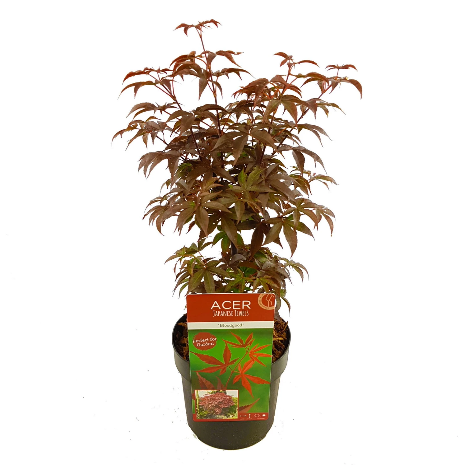 Der Rote Fächerahorn ‚Bloodgood‘ ist ein malerisch, aufrechter Strauch mit breiter Krone. Der herrliche Ahorn erreicht eine Höhe und Breite von 2 bis 4 m und schmückt mit seinem roten Laub jeden Garten. Gleichermaßen schmückt er im Kübel jede Terrasse und Balkon. Das dekorative, fächerförmige, rote Blatt nimmt im Herbst eine scharlachrote Farbe an. Die Pflanze fühlt sich an einem sonnigen bis halbschattigen Standort wohl. In zu schattigen Lagen vergrünt das Blatt etwas. Lange Triebe müssen für einen dichten Wuchs im März geschnitten werden. Pflanzen im Topf müssen im Winter geschützt werden. Wichtig ist, dass hier der Wurzelbereich geschützt / eingepackt wird. Ansonsten ist der Ahorn winterhart.