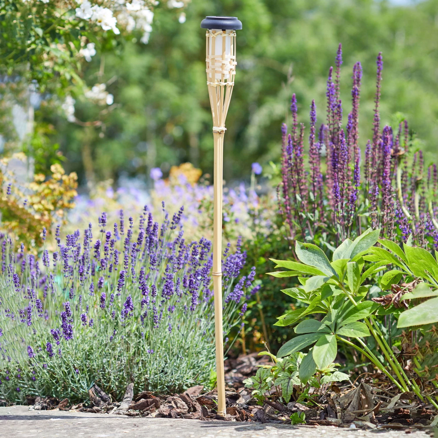 Solar-Bambusfackel Mit Flammeneffekt, Höhe Ca. 90 Cm