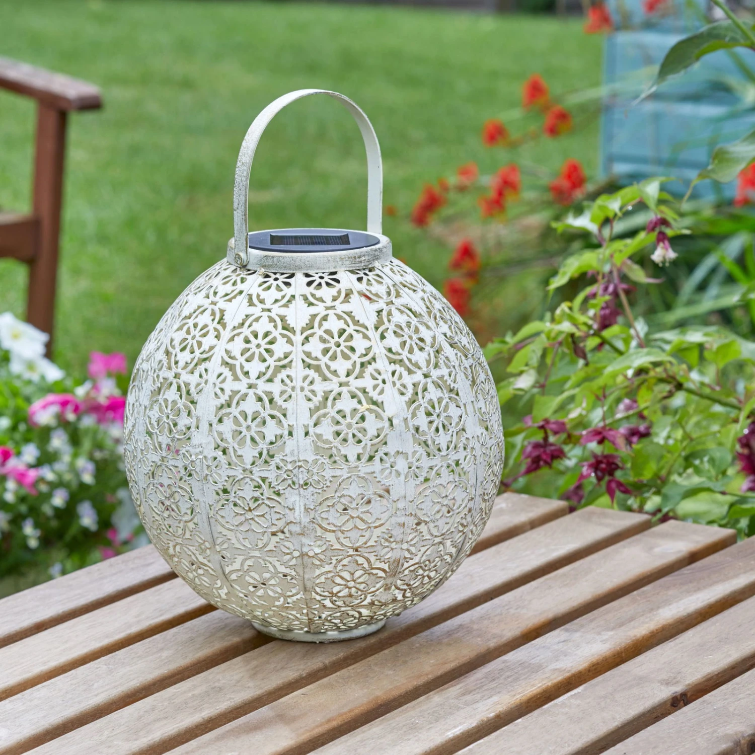 Die Lampe ist mit einer Breite von 22,5 cm und mit 23,5 cm Höhe nicht nur ideal für einen Garten, sondern kann auch in kleineren Außenbereichen als dekorative Solar Laterne mit glanzvollen Akzenten überzeugen. Mit dieser Leuchte sind Ihnen die bewundernden Blicke Ihrer Gäste und Nachbarn sicher: perfekt für die nächste Grillparty im Garten mit Familie und Freunden.