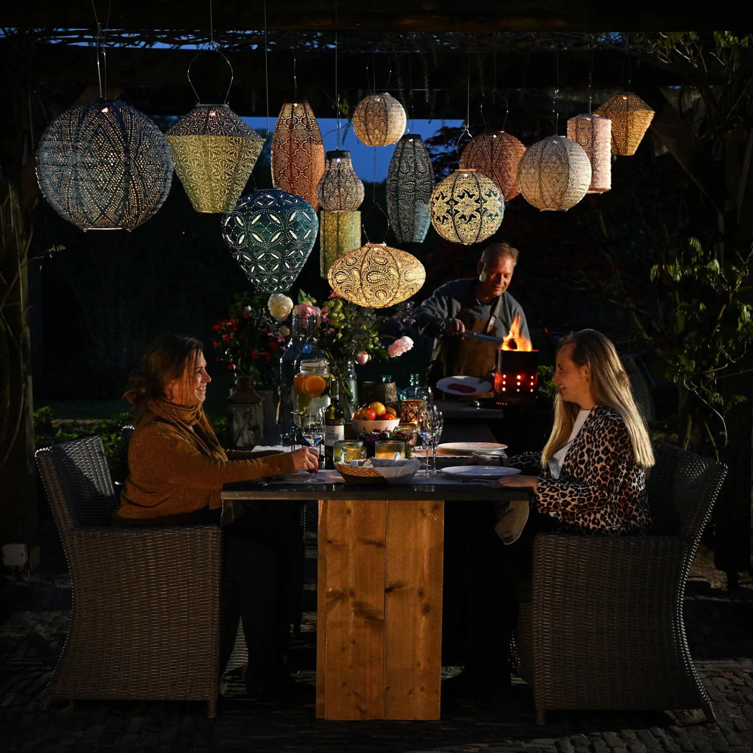 Bei einer Gartenparty spendet diese helltaupeene Solarlaterne ‚Round 30‘ ein elegantes Licht. Es entstehen schöne Muster, die einen zusätzlichen Charme versprühen. Die Laterne ist zusammenfaltbar und deshalb auch bestens als mobile Dekoration geeignet. Sie besteht aus Tyvek R1443 PU, 43 g/qm und hat die Größe 30 x 28,9 cm.
