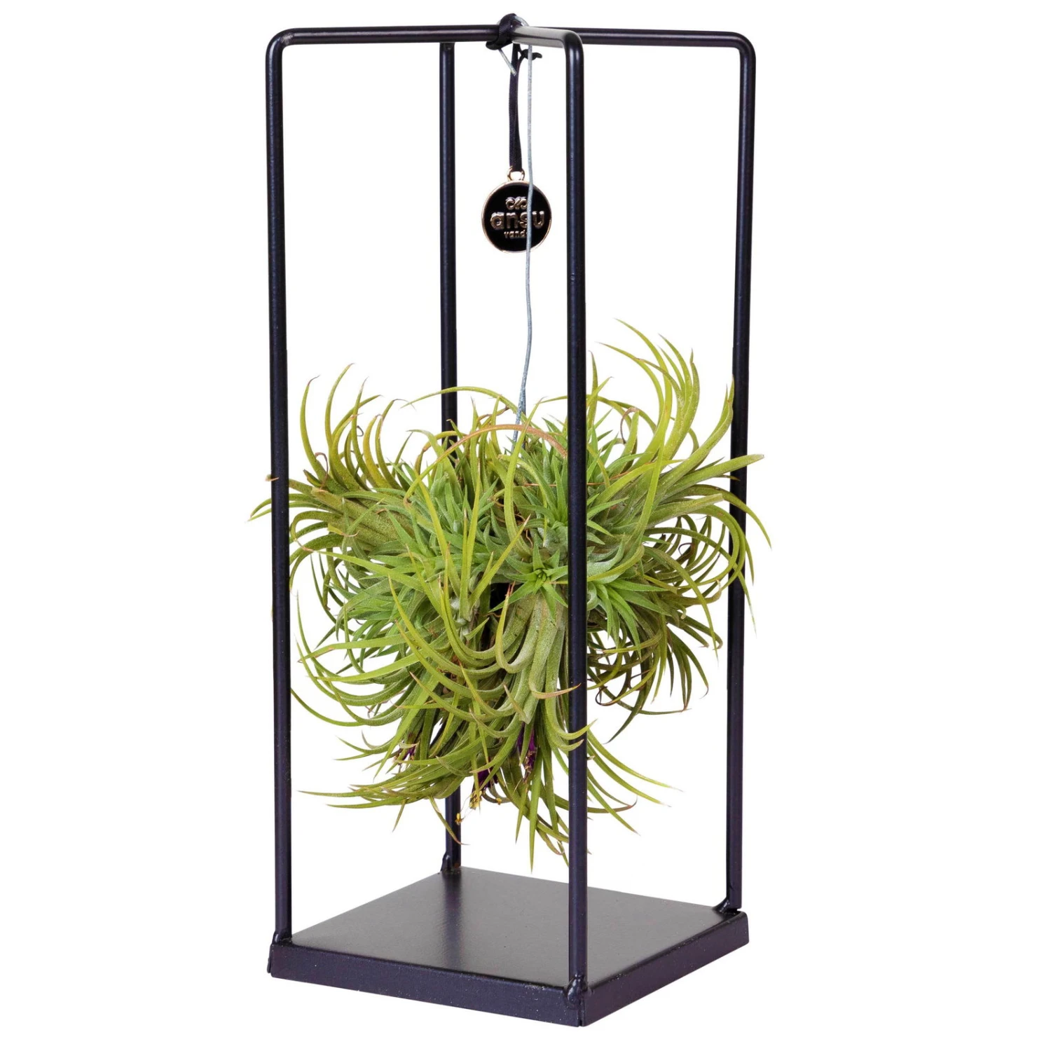 Diese Tillandise ‚Silver Ball‘ ist ein besonders außergewöhnlicher Blickfang für Ihre Wohnung: Die kugelförmige Pflanze mit den zauberhaft verdrehten Blättern scheint geradezu in dem modernen, minimalistischen Metallgestell zu schweben. Als besonderes Dekoelement auf Tischen, Fensterbänken oder Schränken kommt die aparte, eindrucksvolle Optik der Tillandsie voll zur Geltung und sichert Ihnen die Bewunderung Ihrer Gäste.