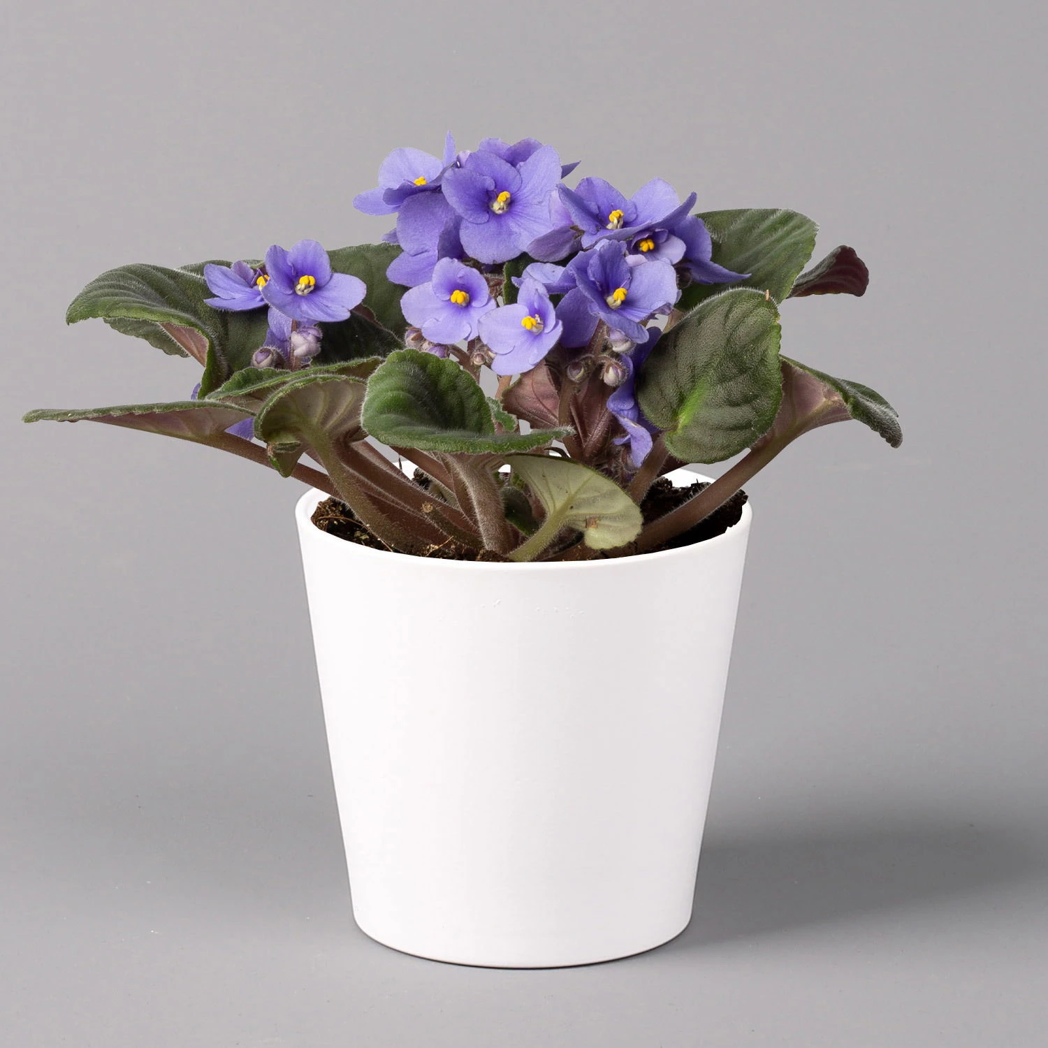 Das Usambaraveilchen (Saintpaulia ionantha-Hybriden) ist eine zarte Blühpflanze mit prächtigen Blüten, die ursprünglich aus Afrika stammt und sich bei uns in der Zimmerkultur besonderer Beliebtheit erfreut. Charakteristisch sind die rundlichen, fleischigen Blätter, die mit einem feinen Flaum überzogen sind, was ihnen ihr samtiges Äußeres verleiht. Das Usambaraveilchen wächst gedrungen und krautig ausdauernd und bildet eine Blattrosette aus. Die Pflanze erreicht eine Höhe von bis zu 15 cm.