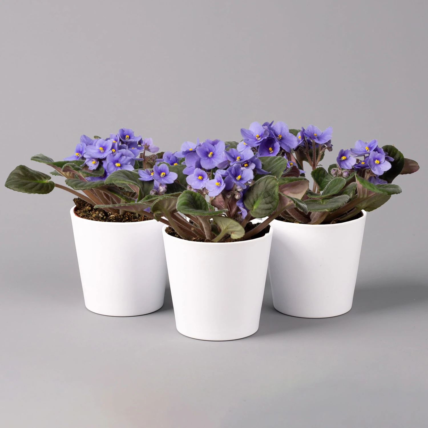 Usambaraveilchen In Keramiktopf Dallas Weiß, Hellblau, Topf-Ø 12 Cm, 3er-Set